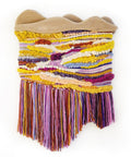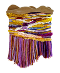 Sculptural weaving with custom cherry wood header.